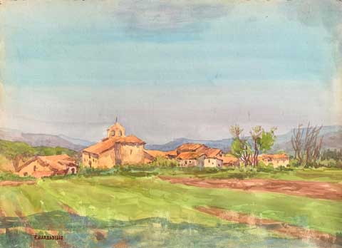 10 Paisaje con iglesia y montana